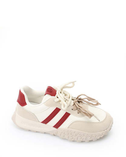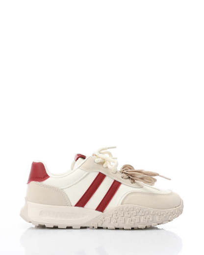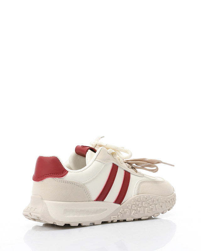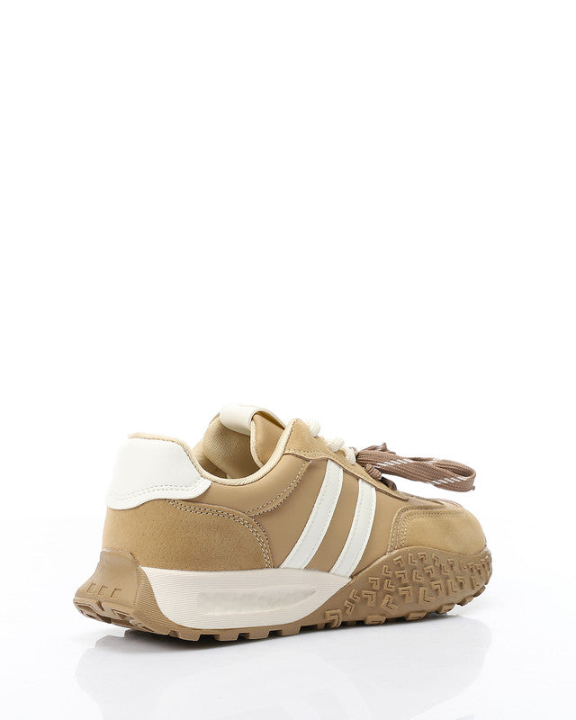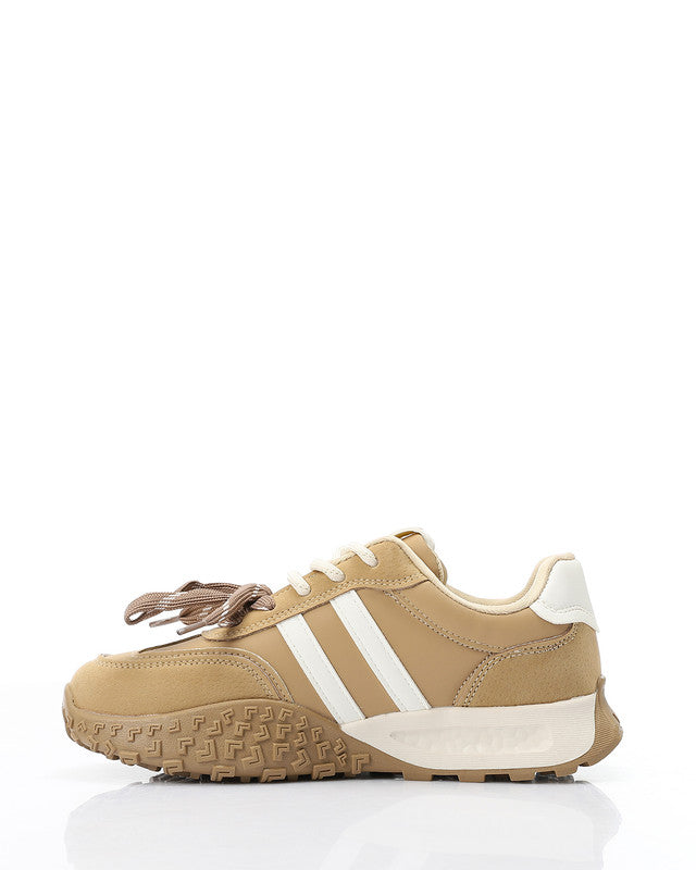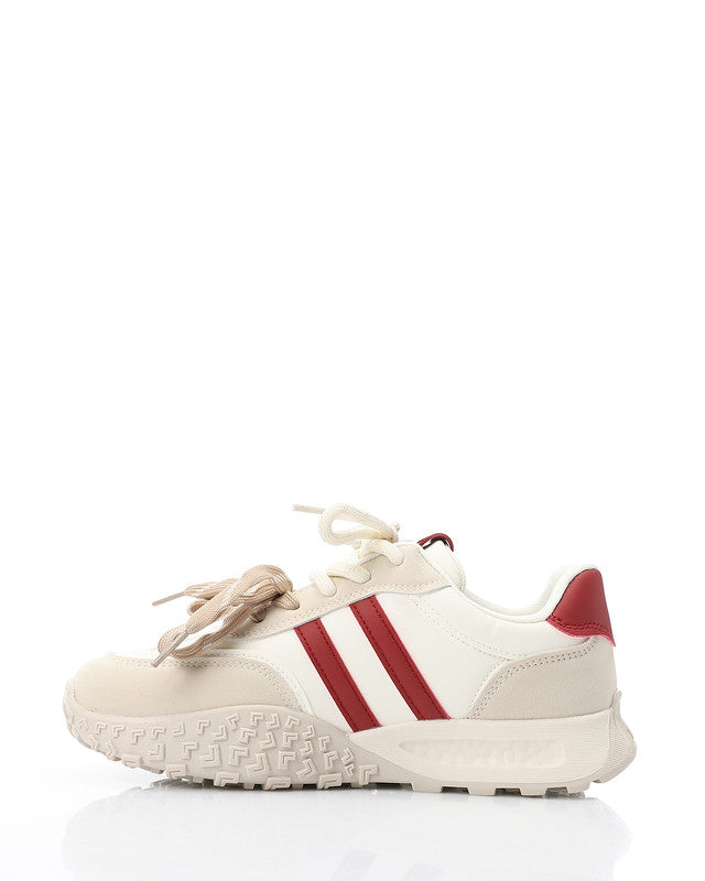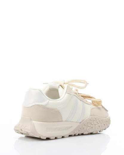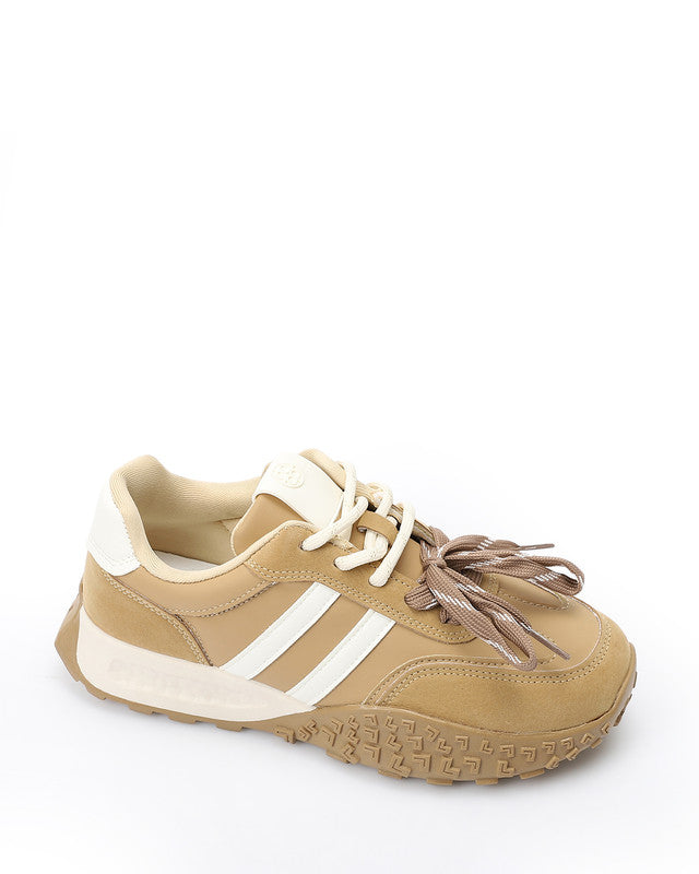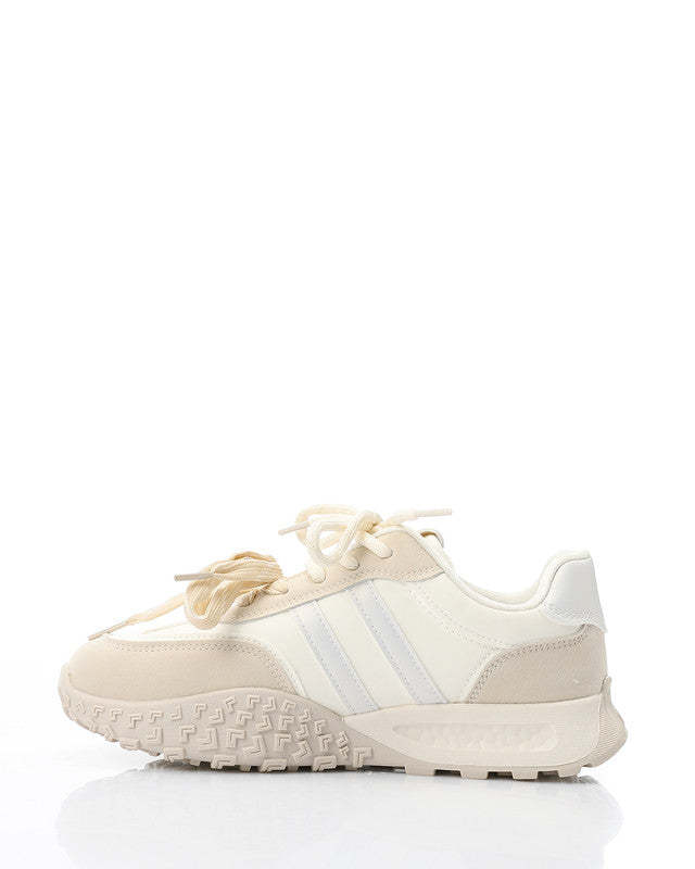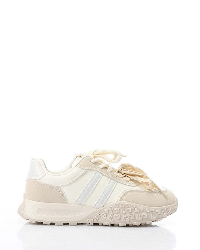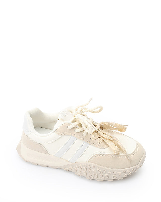 Prominent Sole Double Lace Up Sneakers - Beige & Off White