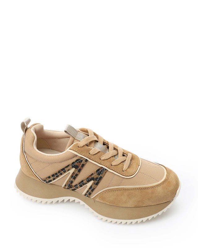Self Pattern Lace Up Sneakers - Buff Beige