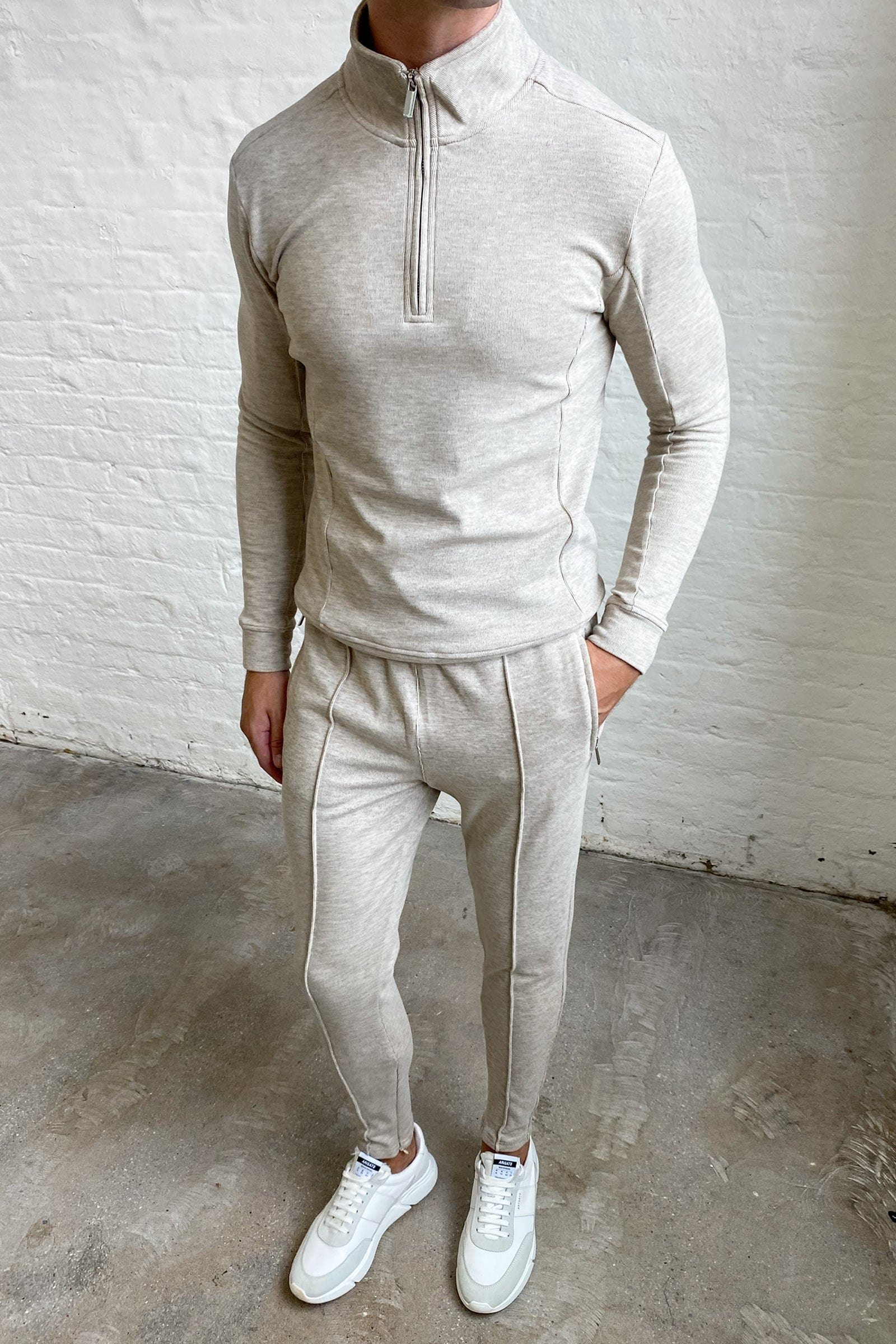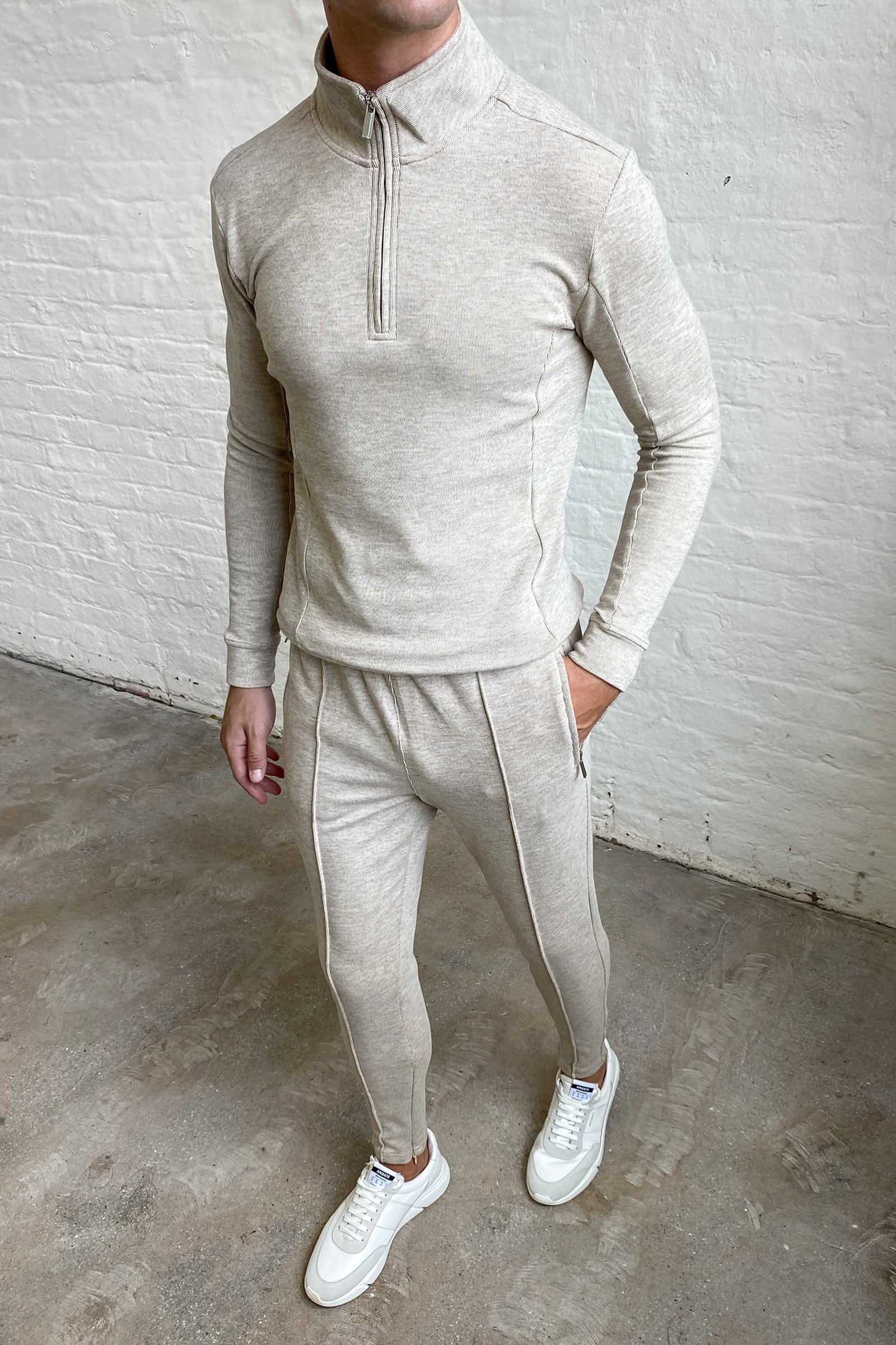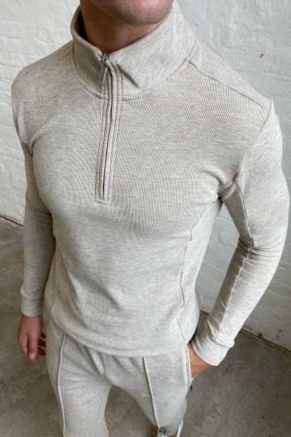 KNITTED 1/4 ZIP - OATMEAL